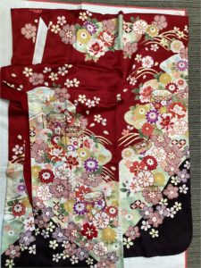 赤黒・花友禅 [身丈]:4尺5寸5分 [裄]:1尺8寸4分 [金額]:¥110,000