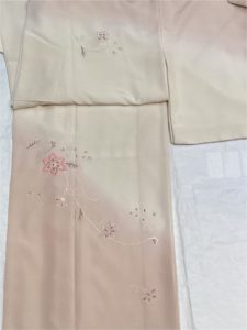 (ポリエステル) 白、ピンクぼかし刺繍草花 [身丈]:166cm [裄]:70cm [金額]:¥10000(時間外は¥15000)