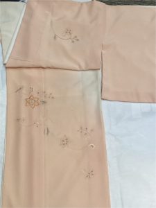 (ポリエステル) 白、ピンクぼかし刺繍唐花 [身丈]:166cm [裄]:68cm [金額]:¥13,000(時間外は¥16,000)