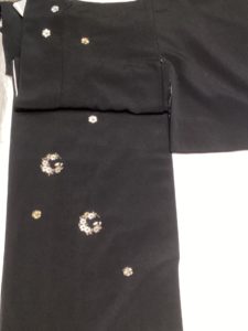 (ポリエステル)黒、刺繍花 [身丈]:165cm [裄]:68cm [金額]:¥10000(時間外は¥15000)