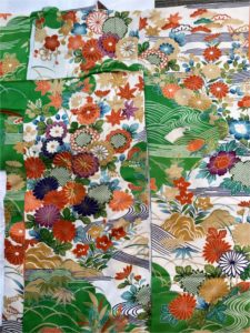 白地に緑・紅型調 [身丈]:155㎝ [裄]:61㎝ [金額]:¥150,000