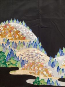 山に四季花 [身丈]:161cm [前巾]:23cm [後巾]:29cm [袖丈]:49cm [裄]:64cm