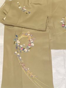 単、鶯色、花輪 [身丈]:153cm(Sサイズ) [裄]:64cm [金額]:¥10,000