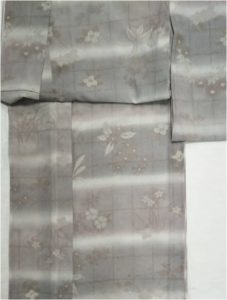 グレー紫横段 花柄 [身丈]:164cm [裄]:66cm