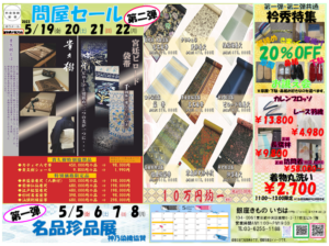 5/12㈮~5/15㈪の4日間、着物お手入れ相談会&神乃染織展を開催致します。